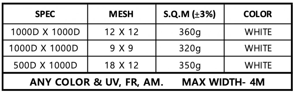 • White PVC-coated mesh banner sheets with/without liner stuck at the back, depending on printer compatibility. The liner is to be removed after printing.